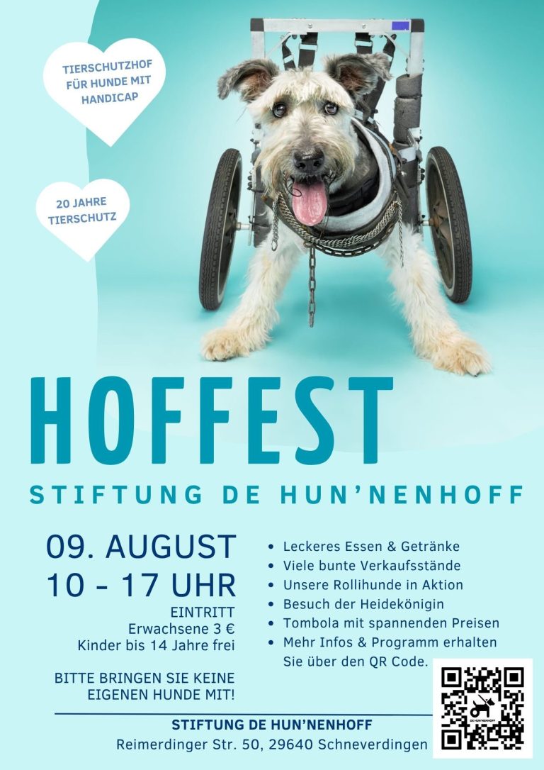 Wir sind der Förderverein, der die Stiftung De Hun'nenhoff dabei unterstützt, Tieren mit Handicap ein sicheres Zuhause zu bieten. Da die monatlichen Kosten für Personal, Futter und Tierarzt immens sind, organisieren wir Aktionen zum Spendensammeln.
